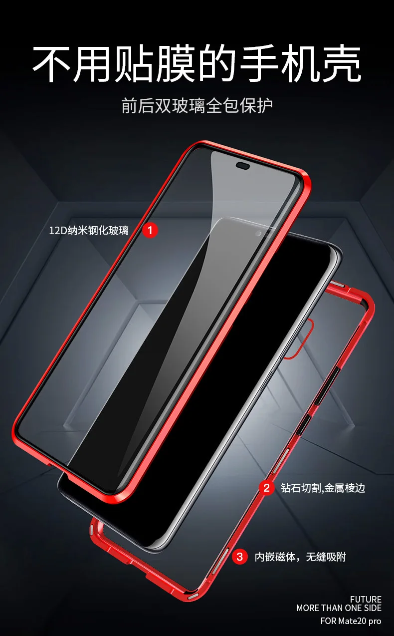 Special Offer Für Huawei Mate 20 Pro Magnetische Fall 360 Front + Zurück doppel seitige 9H Gehärtetem Glas Fall für huawei Mate 20 Pro Metall Stoßstange Fall Discount 28% Today!