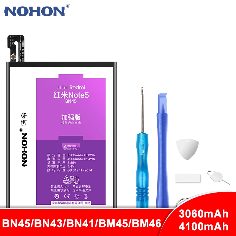 . (39% Rabatt) Kaufen Günstig NOHON Batterie BN45 BN43 BN41 BM45 BM46 Für Xiaomi Redmi Hinweis 2 3 4 4X5 Hongmi Note2 Note3 lithium Polymer Ersatz Batterien Preise Online.