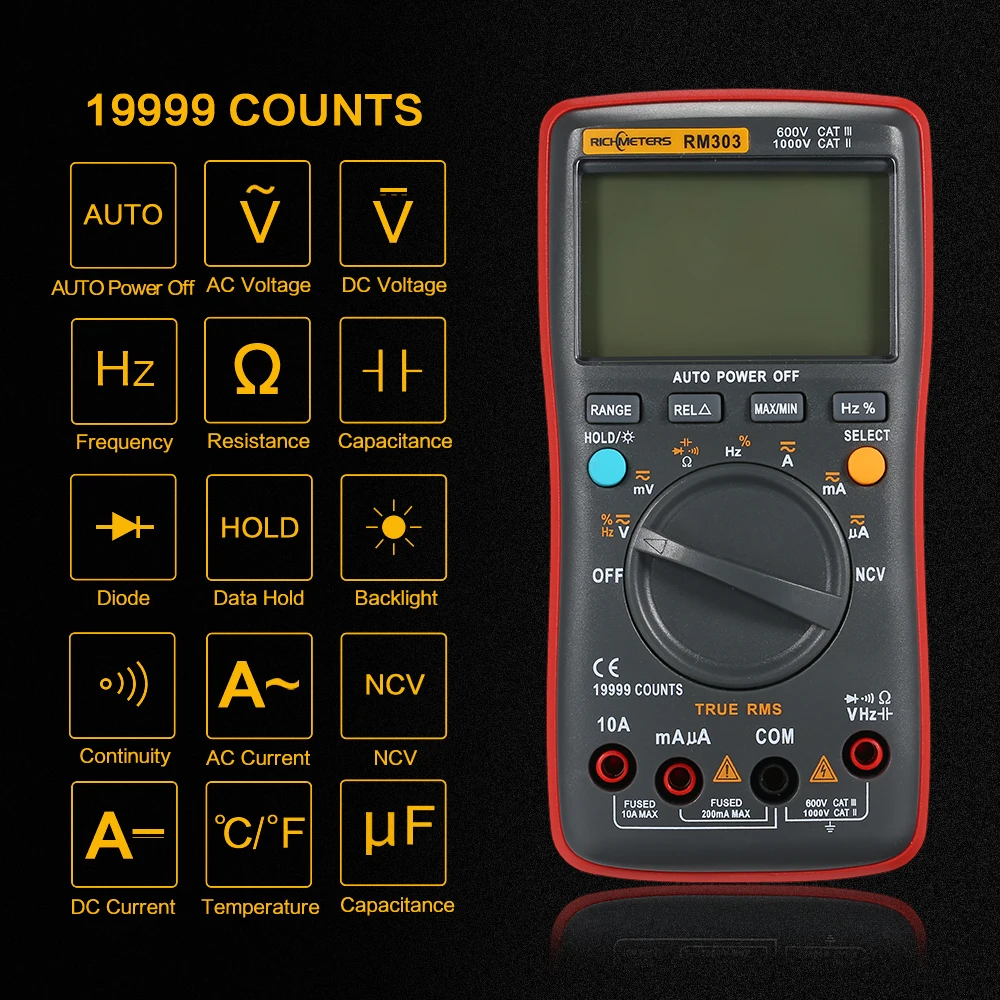 Special Offer RICHMETERS RM303 Digital Multimeter True RMS 19999 Zählt Multimetro AC DC Spannung Amperemeter Strom Ohm Transistor Tester Discount 53% Today!