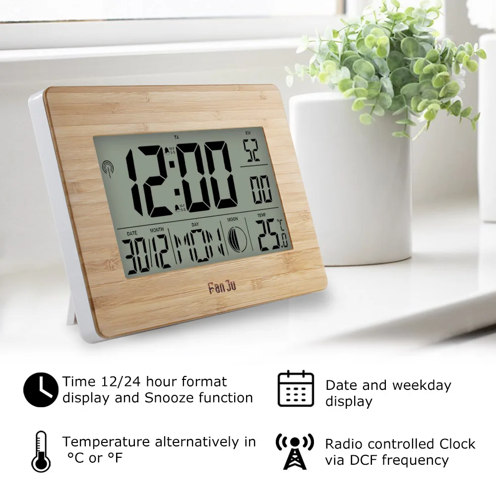 Special Offer FanJu Digitale Wanduhr LCD Große Große Anzahl Zeit Temperatur Kalender Alarm Tisch Schreibtisch Uhren Modernes Design Büro Wohnkultur Discount 54% Today!