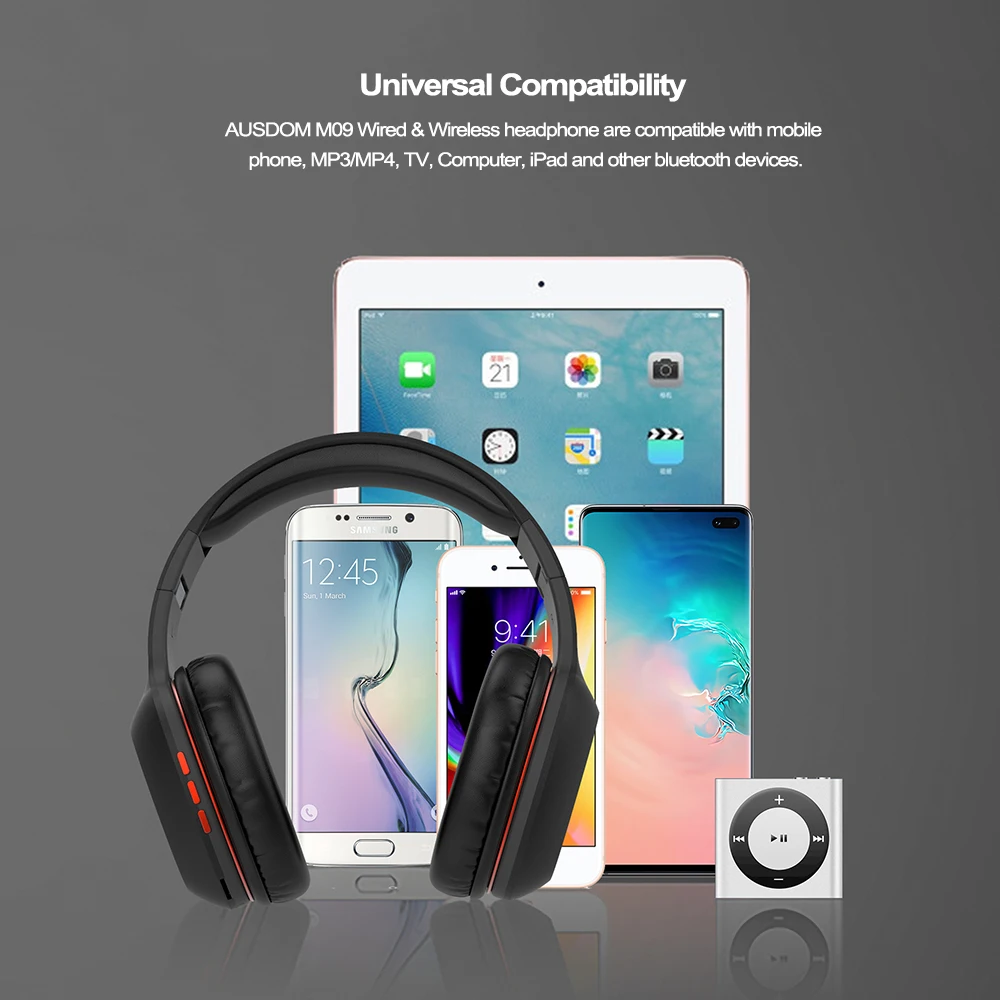 Special Offer Ausdom M09 Bluetooth Kopfhörer Über Ohr Verdrahtete Drahtlose Kopfhörer Faltbare Bluetooth 4,2 Stereo Headset mit Mic Unterstützung TF Karte Discount 72% Today!