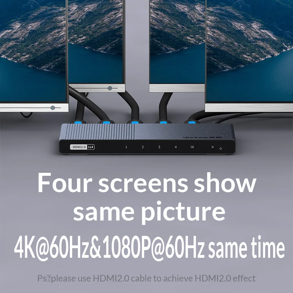 Special Offer Unnlink HD mi Splitter 1X4 HD mi 2,0 UHD 4K @ 60HZ 444 HDR HDCP 2,2 18Gbp 3D für LED Smart tv mi box ps4 xbox one schalter projektor Discount 29% Today!