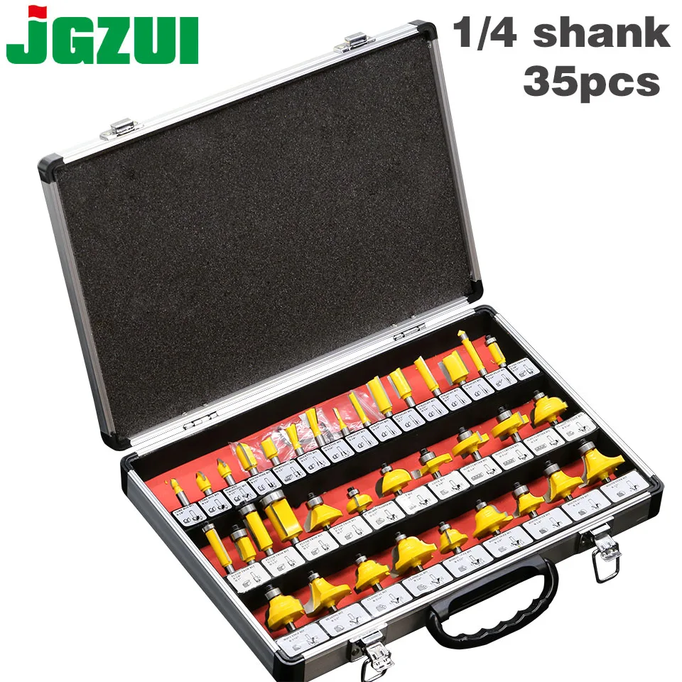 . (16% Rabatt) Kaufen Billig 35 stücke 1 4 \"(6,35mm) schaft Hartmetall Router Bit Set Holz Holzbearbeitung Cutter Trimmen Messer Forming Fräsen w Holz Fall box Preise Online.
