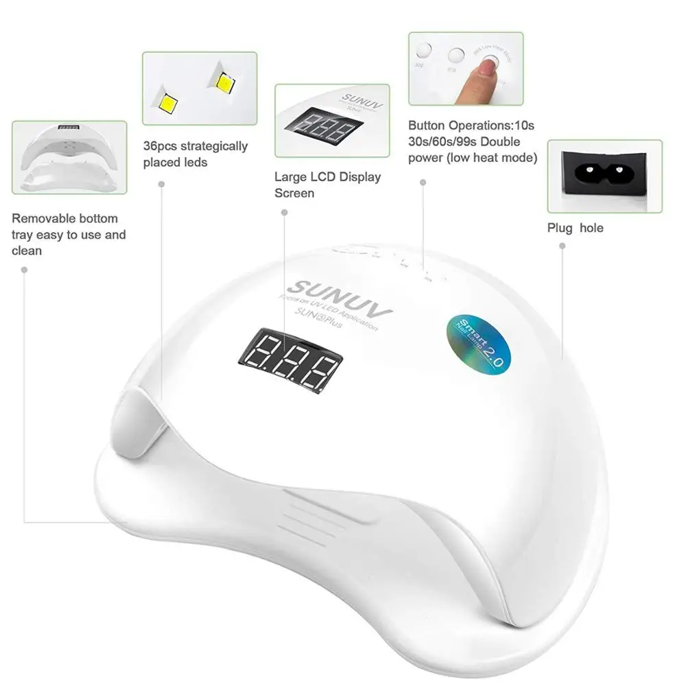 Special Offer SUNUV SUN5 PLUS 48W Nagel Lampe UV LED Licht Nagel Trockner sun5plus Große Größe für Dual Hände Gele Auto sensor Untere Fach LCD Display Discount 34% Today!