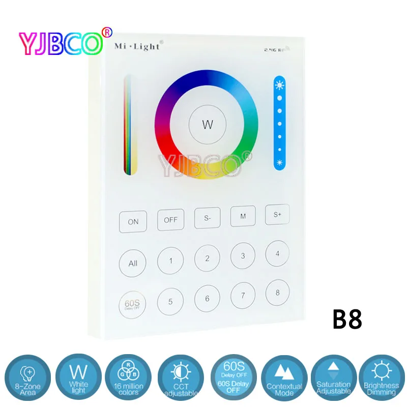 . (47% Rabatt) Günstige Kaufen MiLight 2,4G wireless 8 Zone FUT089 remote; B8 Wand montiert Touch Panel; LS2 5IN 1smart led controller für RGBW RGB + CCT led streifen Preise Online.