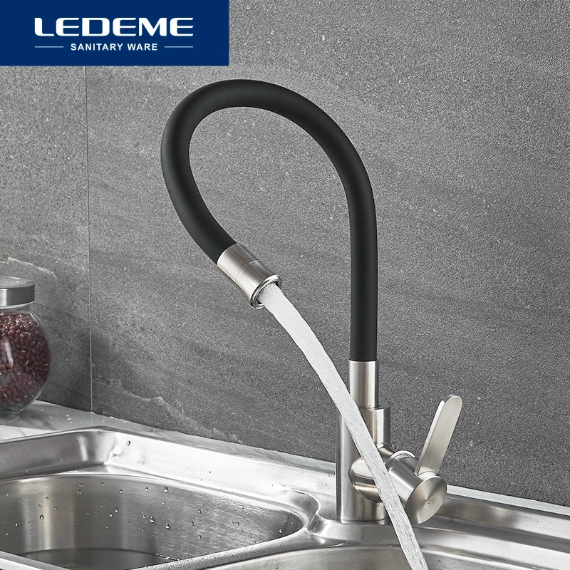 Special Offer LEDEME Neu Design Küche Wasserhahn 360 Swivel Edelstahl Einzigen Griff Mischer Waschbecken Wasserhahn Pull Out Down Chrome Finish L74004 Discount 52% Today!
